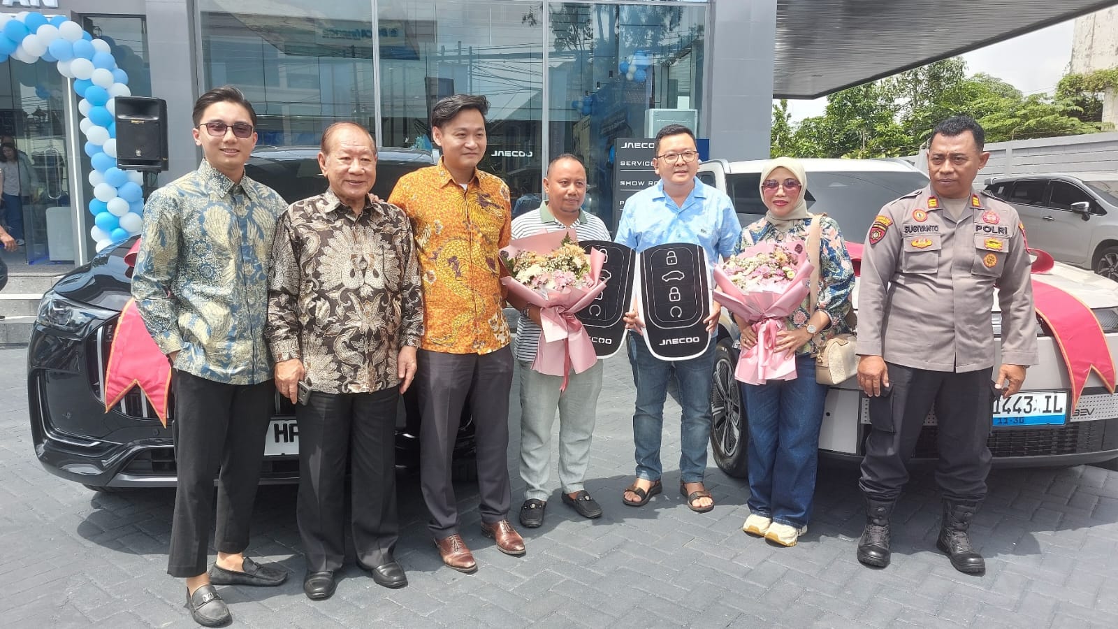 Keterangan Gambar : Director Oriental Group, Tommy Katio (dua dari kiri) saat ikut memotong pita tanda resmi dibukanya dealer baru JAECOO Indonesia.