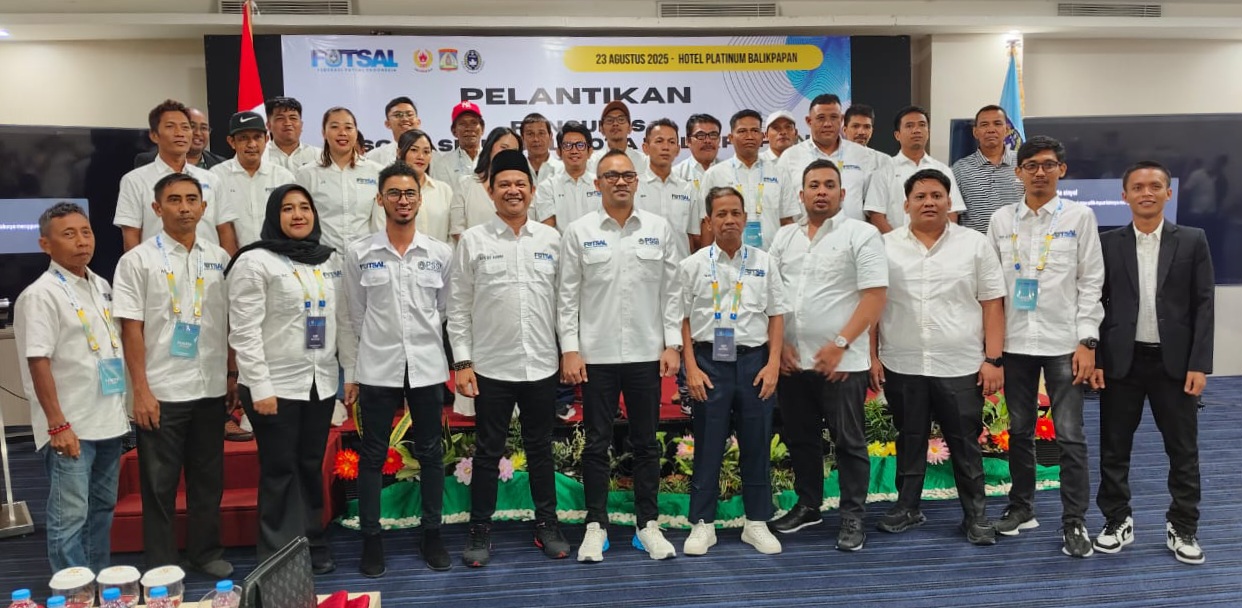 Keterangan Gambar : Taufik saat menerima bendera pataka dari Ketua AFP Kaltim, Adnan. Sebagai mandat untuk menghidupkan Futsal kota Balikpapan.